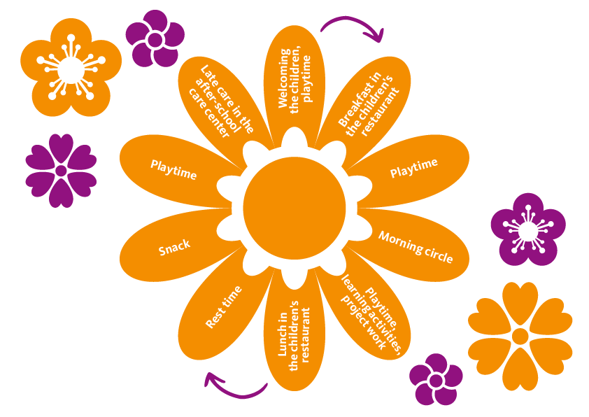 Since kindergarten also serves to prepare children for school, this is a particular focus in the last year of preschool. The children see this time as something special, because they are now the big kids. In the ABC groups, tasks from the educational areas are offered in a playful way. The parents' meeting on the topic of “school readiness” takes place together with representatives of the sports-oriented elementary school at the beginning of the last year of kindergarten. For the children, the last year of kindergarten traditionally ends with the Zuckertütenfest (graduation from Kindergarden party).